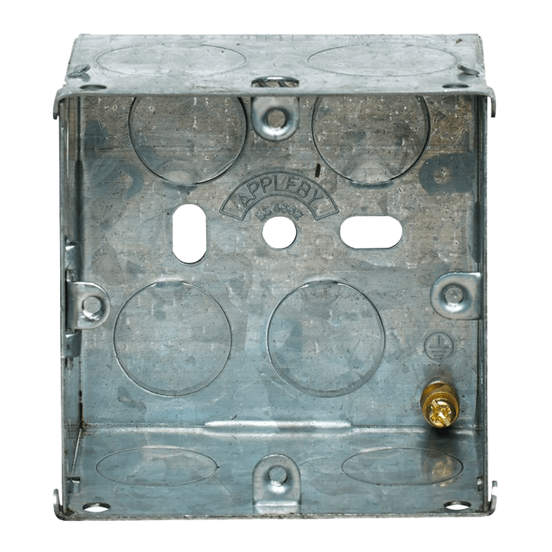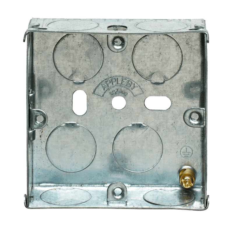 Dual 1 Gang Adjustable Lug Flush Steel Installation Box 25mm Depth